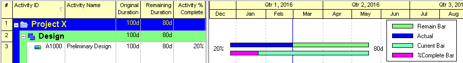 The bar above will show the percent complete compared to "at completion duration". It is a progress bar that correctly displays the rate of progress compared to the overall duration.