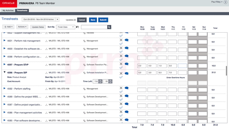 Primavera Progress Reporter (Team Member) - İlerleme ve işçilik saatlerinin girişi için proje ekip üyeleri tarafından kullanılır, web veya mobil cihazlar üzerinden güncellemeye imkan sağlar.