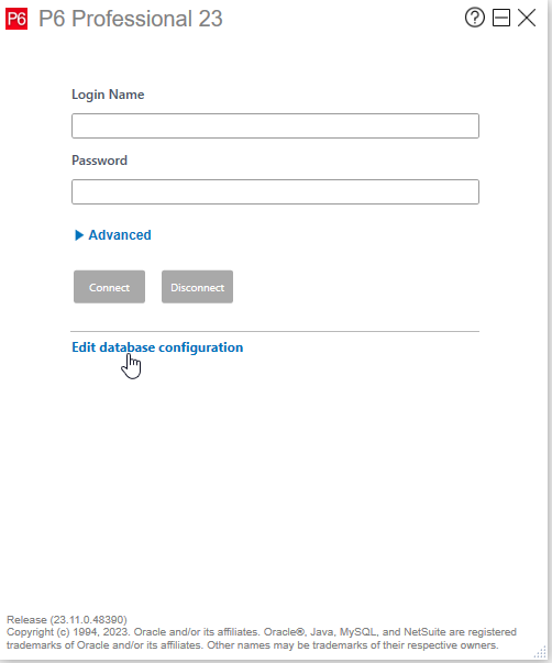 Login ekranında "Edit Database Configuration" a tıklayınız.