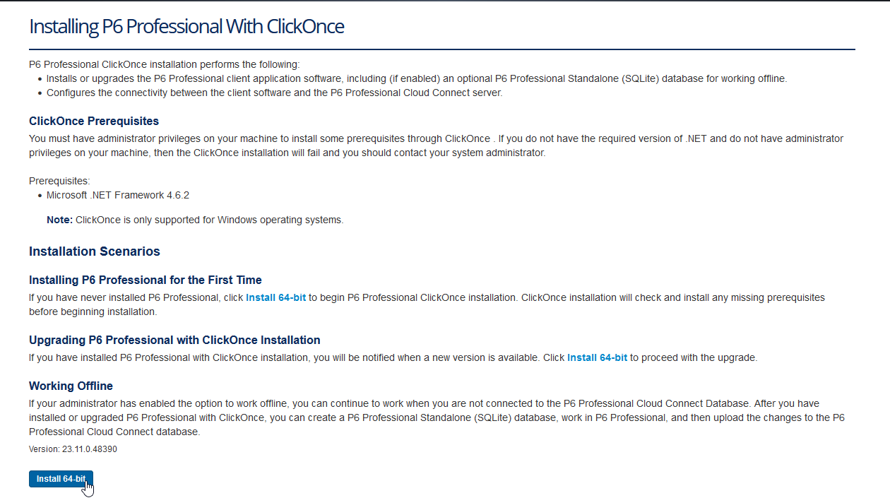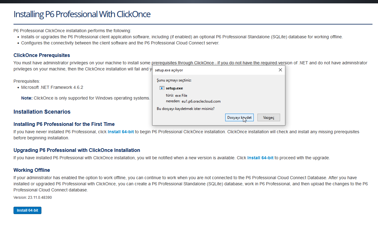 Kurulum dosyası Cloud ortamı üzerinden çalıştırılmaktadır. Bunun için aşağıdaki URL'e giriş yaparak P6 Cloud ortamına erişin.