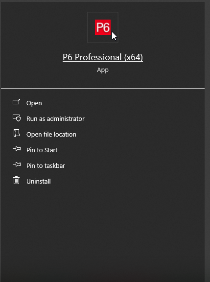Kurulum tamamlanınca uygulama Windows başlat menüsünde "P6 Professional (x64)" olarak görünecektir. Uygulamayı açmak için "P6 Professional (x64)" e tıklayınız.